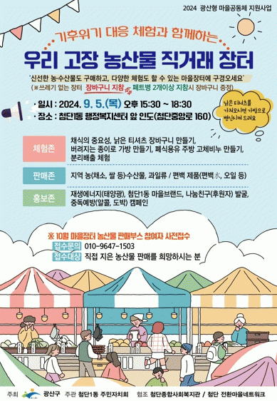 µµ¡¤³ó »ó»ý¸¶À»ÀåÅÍ´Â 2024 ±¤»êÇü ¸¶À»°øµ¿Ã¼ Áö¿ø»ç¾÷À¸·Î Áö¿ª ³ó°¡¿Í ¿¬°áÇØ Áֹο¡°Ô ½Å¼±ÇÑ ½ÄÀç·á¸¦ Àú·ÅÇÏ°Ô ±¸¸ÅÇÒ ¼ö ÀÖ´Â ±âȸ¸¦ Á¦°øÇÑ´Ù.