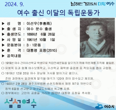 À̼±¿ì ¼±»ýÀº ¿©¼ö °£À̼ö»êÇб³ ÀçÇÐ ÁßÀÌ´ø 1919³â, µ¶¸³¸¸¼¼¿îµ¿À» ÀÏÀ¸Å°±â À§ÇØ À§Ä£°è¸¦ Á¶Á÷ÇØ Ȱµ¿Çß´Ù.