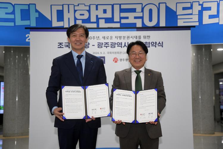 ±¤ÁÖ½Ã-Á¶±¹Çõ½Å´çÀº ´ëÇѹα¹ ¹Ì·¡ ¹ø¿µ°ú ±¹¹ÎÀÇ ±âº»Àû »î º¸ÀåÀ» À§ÇØ ¼·Î Çù·ÂÇϱâ·Î ¾à¼ÓÇß´Ù.