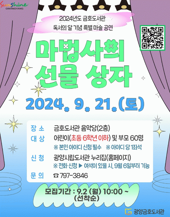 ±¤¾ç±ÝÈ£µµ¼°üÀº 9¿ù µ¶¼ÀÇ ´ÞÀ» ¸ÂÀÌÇØ ¿Â °¡Á·ÀÌ ¼ÒÅëÇÒ ¼ö ÀÖ´Â ½Ã°£À» Á¦°øÇϰí Áö¿ª ÁֹεéÀÇ ¸¶¼ú °ø¿¬¿¡ ´ëÇÑ ¿ä±¸¸¦ ÃæÁ·½Ã۱â À§ÇØ °ü°´µéÀÇ È£±â½É°ú »ó»ó·ÂÀ» Ű¿öÁÙ ¼ö ÀÖ´Â º¼°Å¸®¸¦ ÁغñÇß´Ù.