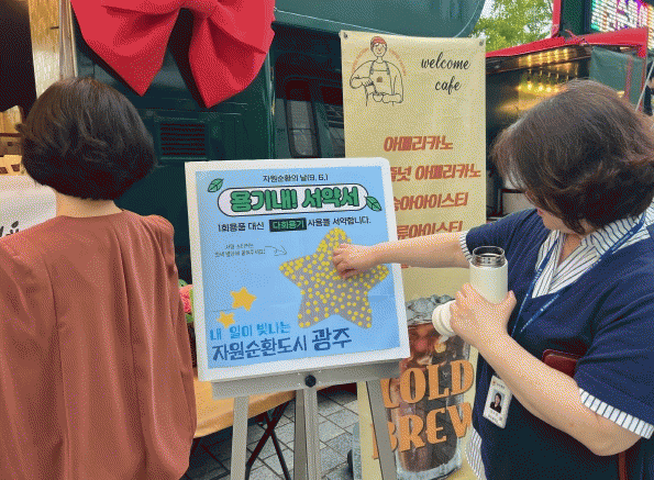 ±¤Áֽô °ø°ø±â°ü ÀÏȸ¿ëǰ ÁÙÀ̱⸦ À§ÇØ ¡®ÀÏȸ¿ë ÄÅ ¾ø´Â Ä¿ÇÇÂ÷ Çà»ç¡¯¸¦ ¿°í °³ÀÎÄÅÀ» °¡Á®¿Â Âü¿©ÀÚ¿¡°Ô Ä¿ÇǸ¦ Á¦°ø, ÀÏ»ó ¼Ó¿¡¼ ÀÏȸ¿ëǰ ÁÙÀ̱⠽ÇõÀ» ´ÙÁüÇß´Ù.