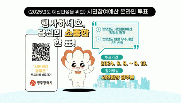 ÅõÇ¥ Âü¿©ÀÚ´Â 2025³âµµ ¿¹»êÆí¼º ÀûÁ¤¼º Æò°¡(»ó¡¤Áß»ó¡¤Áß¡¤ÁßÇÏ¡¤ÇÏ)¿Í 2023³âµµ ÃßÁø ¿Ï·áÇÑ ½Ã¹ÎÂü¿©¿¹»ê »ç¾÷ 17°Ç Áß 2°ÇÀ» ¿ì¼ö»ç¾÷À¸·Î ¼±Á¤ÇÏ¸é µÈ´Ù. ±¤ÁֽùÎÀ̶ó¸é ´©±¸³ª ÅõÇ¥¿¡ Âü¿©ÇÒ ¼ö ÀÖ´Ù.