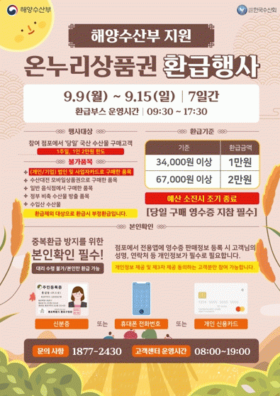 ¡®¿Â´©¸®»óǰ±Ç ȯ±ÞÇà»ç¡¯ ±â°£¿¡ ±¹³»»ê ¼ö»ê¹°À» ±¸ÀÔÇÏ¸é ´çÀÏ ±¸¸Å±Ý¾×ÀÇ 30%¸¦ ¿Â´©¸®»óǰ±ÇÀ¸·Î ȯ±Þ(1ÀÎ ÃÖ´ë 2¸¸¿ø)ÇØÁØ´Ù.