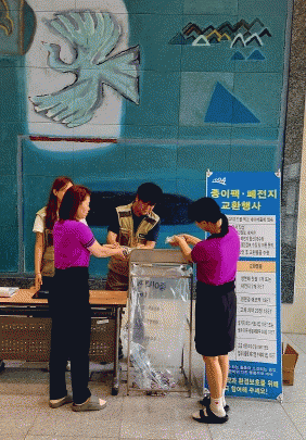 ¸Å¿ù ù°ÁÖ ±Ý¿äÀÏ¿¡´Â ¡®Á¾ÀÌÆÑ ¡¤ ÆóÀüÁö ±³È¯ÀÇ ³¯¡¯ÀÌ ¿î¿µµÇ¸ç, ±º¹ÎµéÀº Á¾ÀÌÆÑ°ú ÆóÀüÁö¸¦ °¡±î¿î À¾¸é»ç¹«¼Ò¿¡¼ ¡®Á¦·Î ¿þÀ̽ºÆ® ¹°Ç°¡¯À¸·Î ±³È¯ÇÒ ¼ö ÀÖ´Ù. Á¦·Î ¿þÀ̽ºÆ® ¹°Ç°Àº ¸ðµç Á¦Ç°ÀÌ Àç»ç¿ëµÉ ¼ö ÀÖµµ·Ï Æó±â¹° ¹æÁö¿¡ ÃÊÁ¡À» µÎ°í ¸¸µé¾îÁø Á¦Ç°ÀÌ´Ù.