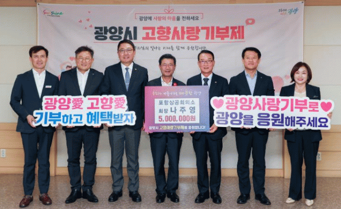 Áö³ 8¿ù 28ÀÏ¿¡ ¿ì±¤ÀÏ ±¤¾ç»ó°øÈ¸ÀÇ¼Ò È¸ÀåÀÌ ÇüÁ¦ µµ½Ã Æ÷Ç׽ø¦ ¹æ¹®ÇØ °íÇâ»ç¶û ±âºÎ±Ý 500¸¸ ¿øÀ» Àü´ÞÇÑ °Í¿¡ À̾î, ³ªÁÖ¿µ ȸÀåµµ Åë Å« ±âºÎ¸¦ À̾¸ç »ó»ý¹ßÀü¿¡ ¾ÕÀå¼¹´Ù.