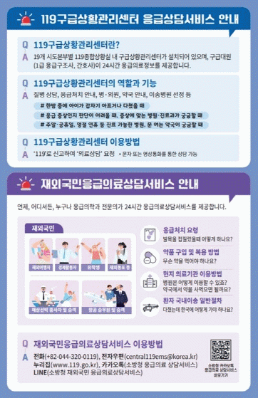 119±¸±Þ»óȲ°ü¸®¼¾ÅÍ´Â ÁÖ¸», °øÈÞÀÏÀ» Æ÷ÇÔÇÏ¿© Àü¹®ÀûÀÎ ÀÚ°ÝÀ» °®Ãá Á÷¿ø(Àü¹®ÀÇ·áÁöµµÀÇ»ç, °£È£»ç, ÀÀ±Þ±¸Á¶»ç)µéÀÌ 365ÀÏ 24½Ã°£ Àü±¹ ¾îµð¼µç ÀÀ±Þóġ Áöµµ, Áúº´»ó´ã, º´ÀÇ¿ø ¾È³» µî ÀϹÝÀεéÀ» À§ÇÑ »ó´ã¼ºñ½º¸¦ Á¦°øÇϰí ÀÖ´Ù.