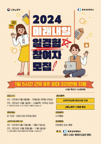 ¸ðÁý´ë»óÀº ¸¸ 15¼¼~34¼¼ ÀÌÇÏ ¹ÌÃë¾÷ û³âÀÌ¸é ´©±¸³ª Áö¿ø °¡´ÉÇϸç Âü¿© û³â¿¡°Ô´Â 1ÀÏ 5½Ã°£ ±Ù¹«, 8ÁÖ ÃÖ´ë 320¸¸¿øÀ» Áö¿øÇϰí Âü¿©±â¾÷°ú ¸àÅä¿¡°Ôµµ ¼ö´çÀ» Áö±ÞÇÑ´Ù.