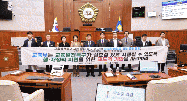 ³ªÁÖ½ÃÀÇȸ´Â Áö¿ª ½ÇÁ¤¿¡ ¸Â´Â »ç¾÷°èȹÀ» ÃßÁøÇÏ°í Æ¯»öÀÖ´Â ±³À°¹ßÀüƯ±¸¸¦ Á¶¼ºÇϱâ À§ÇØ ±³À°Æ¯±¸Áö¿ø±Ý Áõ¾×À» ¿ä±¸Çϰí, ±³À°ºÎ´Â ±³À°¹ßÀüƯ±¸°¡ ½ÇÁ¦ ±³À°ÇöÀå¿¡¼ ½ÇÈ¿¼º ÀÖ°Ô ½ÃÇàµÉ ¼ö ÀÖµµ·Ï ½Å¼ÓÈ÷ Ưº°¹ýÀ» Á¦Á¤ÇÏ¿© ÇࡤÀçÁ¤Àû Áö¿øÀ» À§ÇÑ Á¦µµÀû ±â¹ÝÀ» ¸¶·Ã ÇÒ °ÍÀ» Ã˱¸Çß´Ù.
