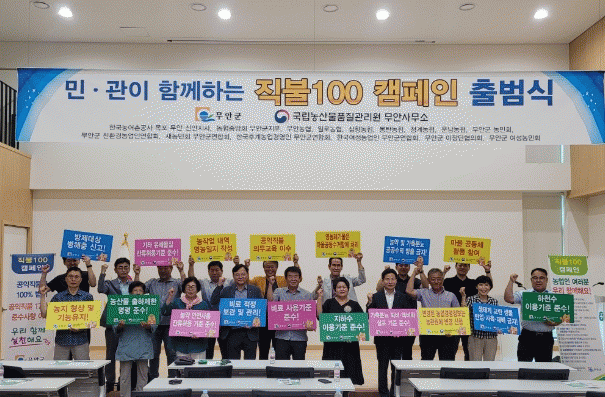 ¹«¾È±º º¸°Ç¼Ò¿¡¼ °³ÃÖµÈ Á÷ºÒ100 Ä·ÆäÀÎ Ãâ¹ü½Ä¿¡´Â ³ó°ü¿ø, ¹«¾È±º, Çѱ¹³ó¾îÃ̰ø»ç, ³óÇù, ³ó¾÷ÀδÜü °ü°èÀÚ µî ÃÑ 30¿©¸íÀÌ Âü¼®Çß´Ù.
