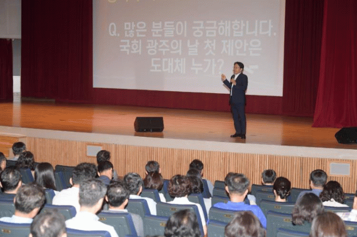 ° ½ÃÀåÀº À̳¯ ¡®±¹È¸, ±¤ÁÖÀÇ ³¯¡¯°ú ±¹ºñ È®º¸, ¹Î»ýÅä·Ðȸ µîÀ» À§ÇØ ¹ã³·¾øÀÌ °í»ýÇÑ °øÁ÷Àڵ鿡°Ô °í¸¶¿òÀ» ÀüÇß´Ù.