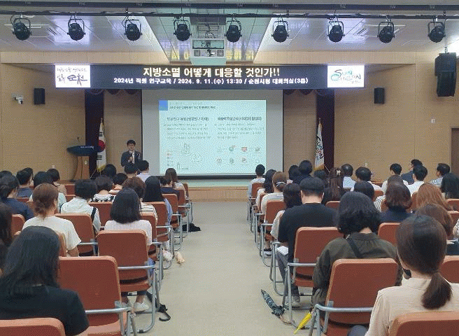 À̳¯ ±³À° °»ç·Î ³ª¼± ÀÌ¿øµµ Çѱ¹Áö¹æÇàÁ¤¿¬±¸¿ø Àα¸°¨¼ÒÁö¿ª´ëÀÀ¼¾ÅÍÀåÀº ¡®»ýȰÀα¸¿¡ ±â¹ÝÇÑ ¼øÃµ Àα¸°¨¼Ò À§±â ÇöȲ ¹× ´ëÀÀ ¹æ¾È¡¯À̶ó´Â ÁÖÁ¦·Î °¿¬À» ÁøÇàÇß´Ù.