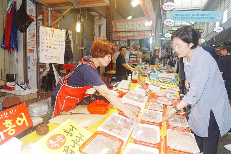 ±¤ÁÖ½ÃÀÇȸ ½Å¼öÁ¤ ÀÇÀå°ú ÀÇȸ»ç¹«Ã³ Á÷¿ø 20¿©¸íÀº ºÏ±¸ ¿ì»êµ¿¿¡ À§Ä¡ÇÑ ¸»¹Ù¿ì½ÃÀåÀ» ã¾Æ ¼¹Î°æÁ¦ÀÇ ÃÖÀϼ±¿¡¼ ¿½ÉÈ÷ ÀÏÇÏ´Â »óÀεéÀ» °Ý·ÁÇϰí, Ãß¼® Á¦¼ö¿ëǰ°ú »ýÇÊǰÀ» ±¸ÀÔÇß´Ù.