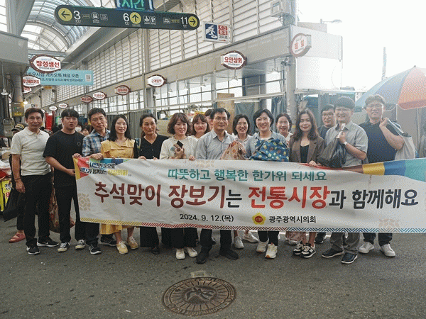[ÅåÅå´º½º]±¤ÁÖ½ÃÀÇȸ´Â 12ÀÏ ¿ÀÈÄ ¹ÎÁ· ÃÖ´ë ¸íÀýÀÎ Ãß¼®À» ¸Â¾Æ ÀüÅë½ÃÀå ¼Òºñ ÃËÁø ¹× Áö¿ª °æÁ¦ Ȱ¼ºÈ¸¦ À§ÇØ ÀüÅë½ÃÀå À庸±â Çà»ç¸¦ ÆîÃÆ´Ù.
