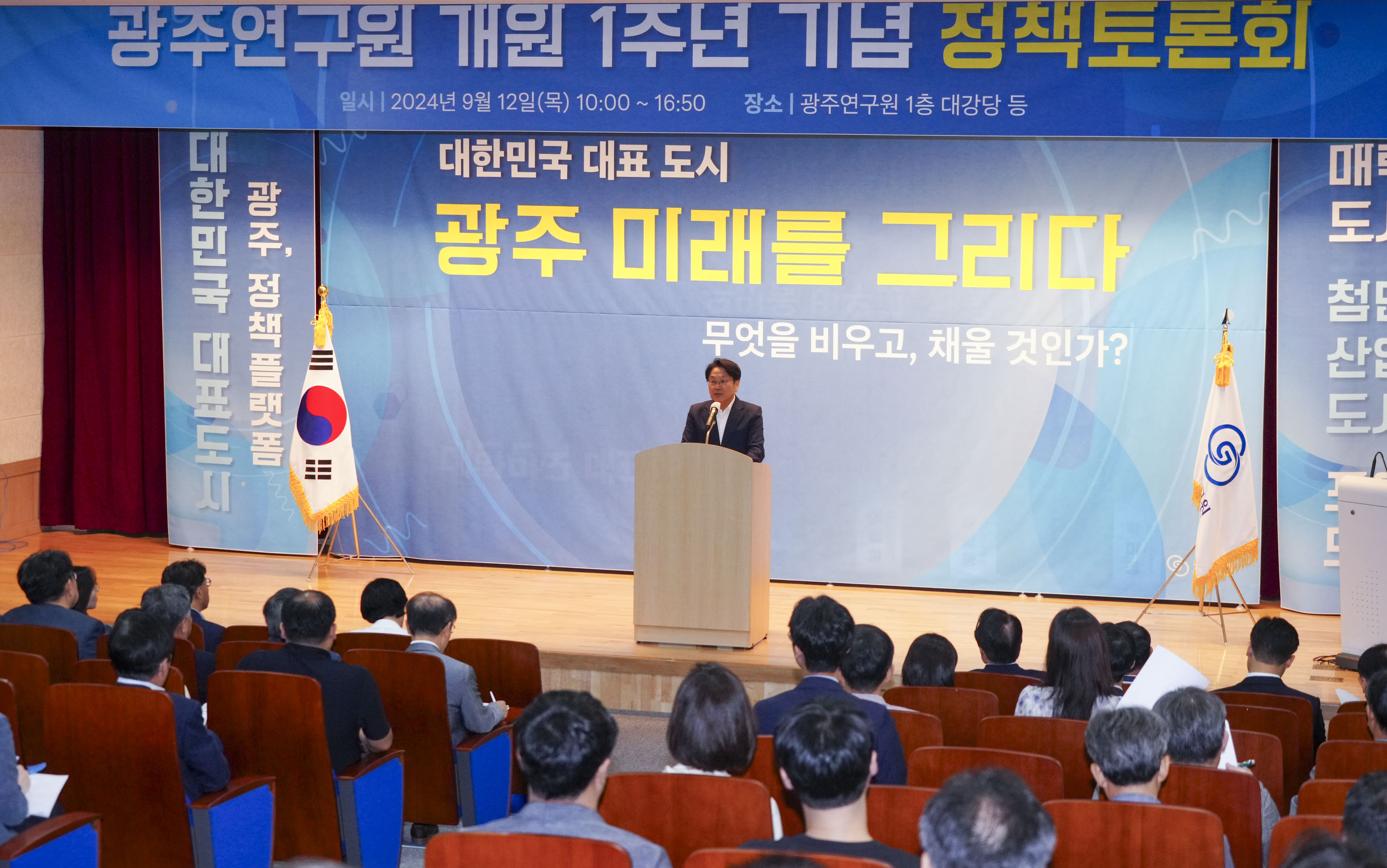 ±¤ÁÖ±¤¿ª½Ã´Â 12ÀÏ ¿ÀÀü ±¤ÁÖ¿¬±¸¿ø¿¡¼ °³¿ø 1ÁÖ³â Á¤Ã¥Åä·Ðȸ¸¦ ¿°í ±¤ÁÖÀÇ ¹Ì·¡»ó°ú Àü·«Å׸¶¸¦ ´ãÀº ¡®±¤ÁÖ ¹Ì·¡ 2050 ºñÀü°ú Àü·«¡¯ ±¸»ó¾ÈÀ» ¹ßÇ¥Çß´Ù.