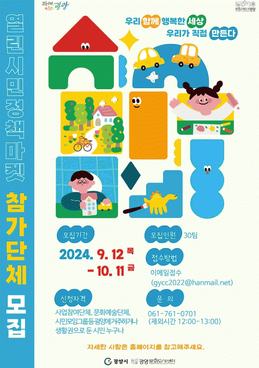 ±¤¾ç½Ã´Â ¹®È¿¹¼ú´Üü, µµ½Ã°øµ¿Ã¼±×·ì, ½Ã¹Îµ¿È£È¸, ¼Ò¸ðÀÓ µî 5¸í ÀÌ»óÀ¸·Î ±¸¼ºÇÑ ÆÀÀ» ÃÑ 30ÆÀÀ» ¸ðÁýÇÑ´Ù.