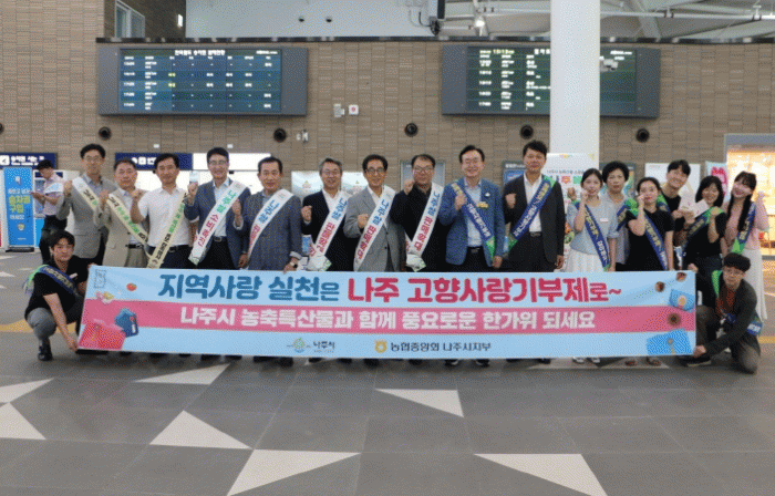 À̳¯ À±º´Å ³ªÁÖ½ÃÀå°ú ³óÇùÁß¾Óȸ ³ªÁÖ½ÃÁöºÎ ½Å°æÈÆ ÁöºÎÀåÀ» ºñ·ÔÇÑ Áö¿ª ³óÇù °ü°èÀÚµéÀÌ Âü¼®ÇØ ³ªÁÖ ½Ò°ú ¹èÁóÀÌ ´ã±ä ¼±¹° ²Ù·¯¹Ì¸¦ ±Í¼º°´µé¿¡°Ô ³ª´²ÁÖ¸é¼ °íÇâ»ç¶û±âºÎÁ¦ÀÇ ÃëÁö¿Í ÇýÅÃÀ» ¾Ë·È´Ù.