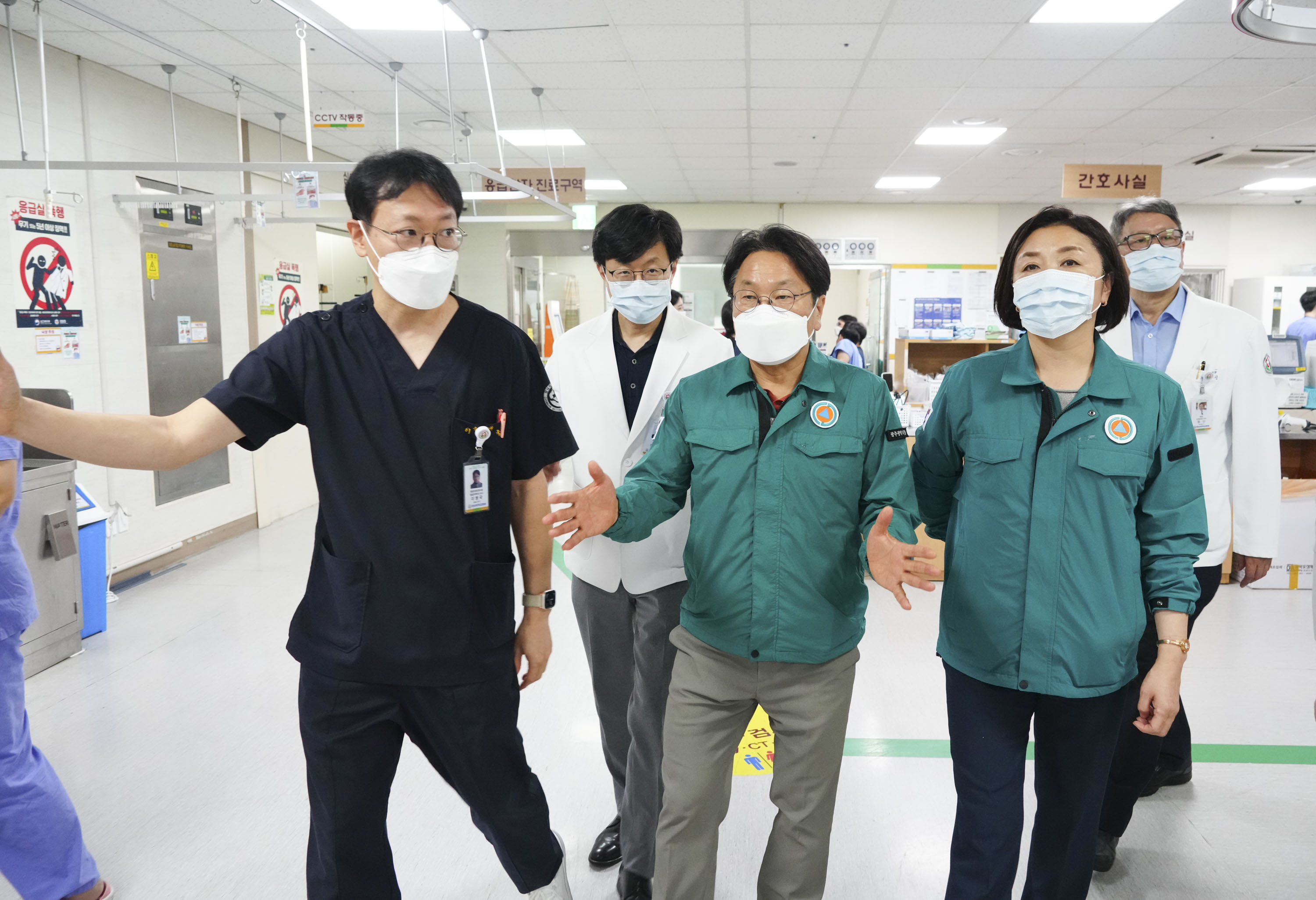 ° ½ÃÀåÀº À̳¯ ÀüÁø¼÷ ±¹È¸ÀÇ¿øÀ» ºñ·ÔÇØ Àü³²´ëº´¿ø Á¤½Å º´¿øÀå, À±°æÃ¶ Áø·áºÎ¿øÀå, ÁÖ¼ºÇÊ ±âȹÁ¶Á¤½ÇÀå, À̺´±¹ ÀÀ±ÞÀÇ·á¼¾ÅÍÀå, ±è¿µ¹Î »ç¹«±¹Àå, ÃÖ¸íÀÌ °£È£ºÎÀå µî ÀÇ·áÁø°ú ÇÔ²² ±Ç¿ªÀÀ±ÞÀÇ·á¼¾ÅÍ ¿î¿µ »óȲ, ÀÀ±ÞȯÀÚ ¼ö¿ë ÇöȲ ¹× ´ëÃ¥ µîÀ» ³íÀÇÇÑ µÚ Ãß¼®¿¡µµ ±Ù¹« ÁßÀÎ ÀÀ±ÞÀÇ·á¼¾ÅÍ ÀÇ·áÁøµéÀ» °Ý·ÁÇß´Ù.
