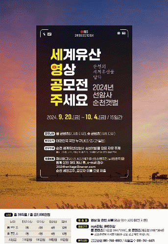 ¡®¼øÃµ ¼¼°èÀ¯»ê ¿µ»ó °ø¸ðÀü¡¯Àº ¼øÃµÀÇ ¼¼°èÀ¯»êÀÎ ¼±¾Ï»ç ¹× ¼øÃµ °¹¹ú°ú °ü·ÃµÈ ÀÚÀ¯ ÁÖÁ¦ÀÇ ¿µ»óÀ» 200ÃÊ À̳» ·Õ ÄÜÅÙÃ÷¿Í 60ÃÊ À̳» ¼ô ÄÜÅÙÃ÷ µÎ °¡Áö ºÐ¾ß·Î °ø¸ðÇÑ´Ù.