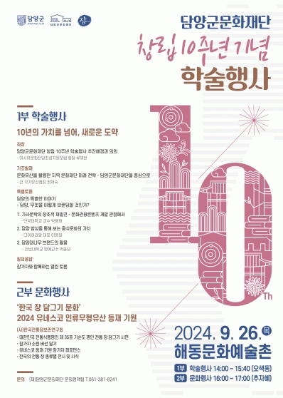 Ưº°È÷ À̹ø ÇмúÇà»ç´Â¡®Çѱ¹ Àå ´ã±×±â ¹®È¡¯°¡ 2024³â À¯³×½ºÄÚ Àηù¹«ÇüÀ¯»ê¿¡ µîÀçµÉ ¼ö Àֱ⸦ ¹Ù¶ó´Â ±â¿øÀ» ´ã¾Æ ½Äǰ¸íÀÎÀÇ Àå´ã±×±â ½Ã¿¬°ú ¿ì¸®ÀÇ ÀåÀ» ½Ã½ÄÇÒ ¼ö ÀÖ´Â Àü½Ã ¹× ¼Ò¸Á ¹ö¼± ´Þ±â µîÀÇ ¹®ÈÇà»ç¸¦ ÇÔ²² ÃßÁøÇÑ´Ù. ÀÌ Çà»ç¸¦ ÅëÇØ Àü ¼¼°èÀûÀ¸·Î ÁÖ¸ñ¹Þ°í ÀÖ´Â K-ǪµåÀÇ ±Ùº»ÀÎ ÀüÅë ÀåÀÇ °¡Ä¡¸¦ ´Ù½Ã ÇÑ ¹ø µÇ»õ±â¸ç ´ã¾çÀÇ ¹®ÈÀû ÀÚ¿øÀ» ÅëÇØ Çѱ¹ ÀüÅë¹®ÈÀÇ ¿ì¼ö¼ºÀ» ³Î¸® ¾Ë¸®°íÀÚ ÇÑ´Ù.