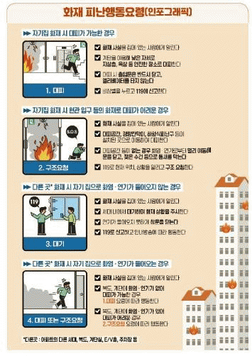 ¾ÆÆÄÆ®´Â ÈÀç ¹ß»ý ½Ã °Ç¹° Àüü·Î ¿¬±â°¡ È®»êÇϱ⠶§¹®¿¡ ¿¬±â(À¯µ¶°¡½º)¸¦ ÇÇÇÒ ¼ö ÀÖµµ·Ï Çdz ½Ã Çൿ¿ä·ÉÀ» ¼÷ÁöÇÏ´Â °ÍÀÌ Áß¿äÇÏ´Ù.