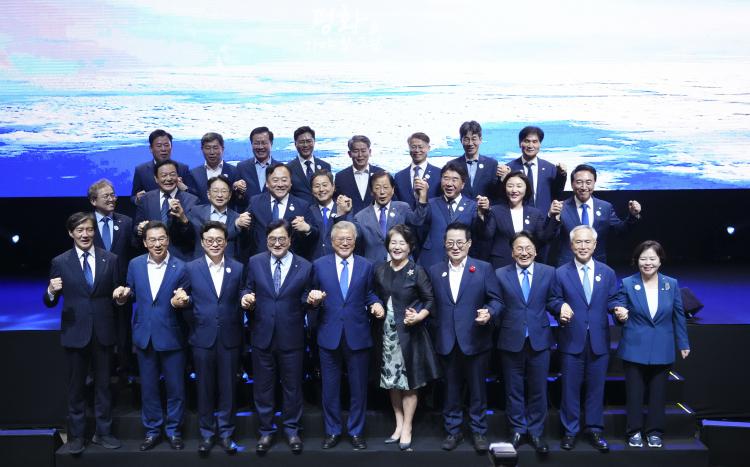 °±âÁ¤ ±¤ÁÖ½ÃÀå µî Âü¼®ÀÚµéÀº À̳¯ ¿ÀÈÄ ±è´ëÁßÄÁº¥¼Ç¼¾ÅÍ¿¡¼ ¿¸° ¡®9¡¤19 Æò¾ç°øµ¿¼±¾ð 6Áֳ⠱â³ä½Ä¡¯¿¡¼ ¡°Çѹݵµ ÆòÈ´Â ±¹¹ÎÀÇ »ý¸í°ú ÀÏ»óÀ» ÁöŰ´Â ÀÏÀÌÀÚ, ³²ºÏÀÇ ÈÇØ¡¤Çù·Â¡¤ÆòȰøÁ¸À¸·Î ÇâÇÏ´Â ±æ¡±À̶ó¸ç ±×·¯±â¿¡ ¡°ÇѹݵµÀÇ ÆòÈ´Â ´ëÇѹα¹ÀÇ Çå¹ýÁ¤½ÅÀÌ´Ù¡±°í ¼±¾ðÇß´Ù.