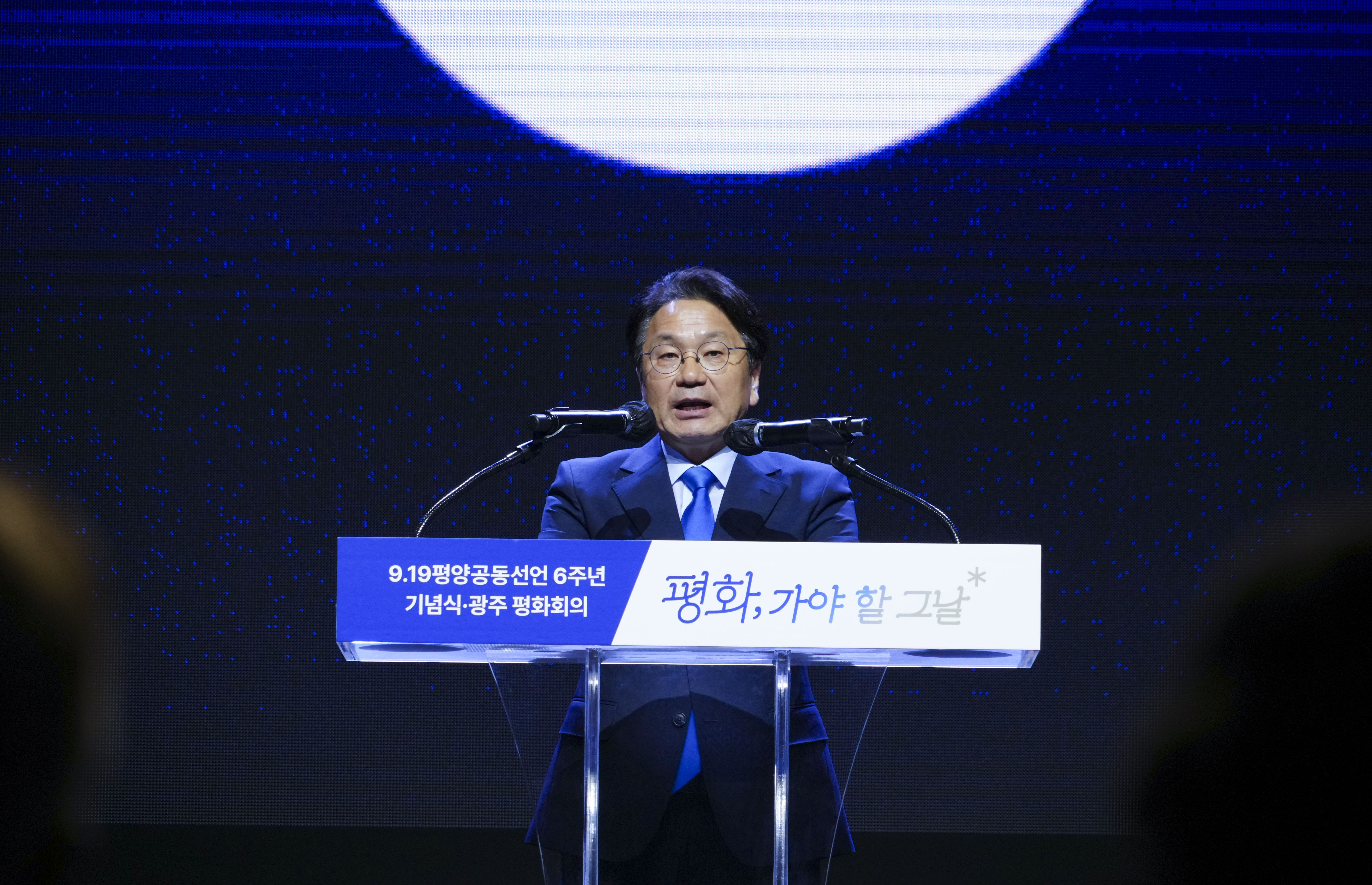 °±âÁ¤ ±¤ÁÖ½ÃÀåÀº ¡°¿À´Ã 9¡¤19 Æò¾ç°øµ¿¼±¾ð ±â³äÇà»ç´Â ²Ç²Ç ¾ó¾îºÙÀº Çѹݵµ¿Í ÀüÀïÀÇ ÆóÇã°¡ ´Ã¾î°¡´Â ¼¼°è¸¦ ÇâÇØ ÇѼÛÀÌ ÆòÈÀÇ ²ÉÀ» °Ç³×´Â ¸¶À½À¸·Î ÁغñÇß´Ù¡±¸ç ¡°¹ÎÁÖ¡¤ÆòÈ¡¤À뱂 µµ½Ã·Î ¸¹Àº »ç¶ûÀ» ¹Þ¾Æ¿Â ±¤ÁÖ°¡ ÀÌÁ¦´Â Æ÷¿ëÀÇ µµ½Ã°¡ µÇ¾î Àü ¼¼°è¿¡ µ¹·Áµå¸®°Ú´Ù¡±°í ¹àÇû´Ù.