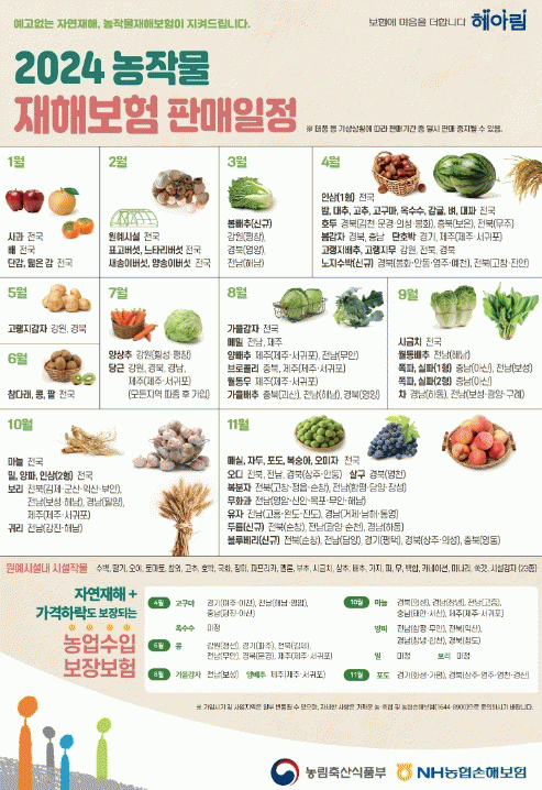 °¡ÀÔ ´ë»ó ³óÀÛ¹°Àº 70Á¾À̸ç, Áö¿ªº° °¡ÀÔ Ç°¸ñÀÌ ´Ù¸£°í ǰ¸ñº° °¡ÀÔ ÀÏÁ¤ÀÌ ´Þ¶ó ³ó¾÷ÀÎÀÌ ¸ÕÀú Áö¿ª³óÇùÀ» ¹æ¹®, ±¸Ã¼ÀûÀÏ ÀÏÁ¤ µîÀ» È®ÀÎ ÈÄ °¡ÀÔÇÒ ¼ö ÀÖ´Ù.