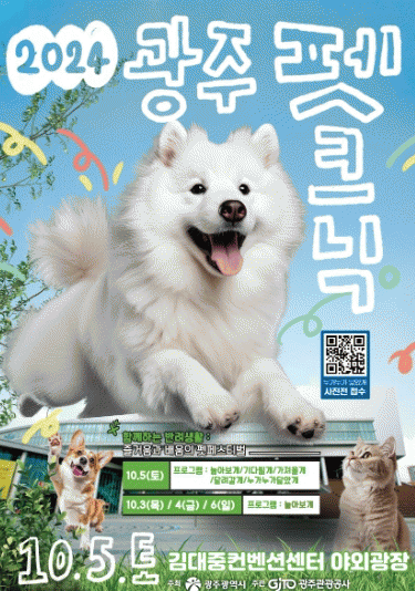 ±¤Áֽð¡ ÁÖÃÖÇϰí, ±¤ÁÖ°ü±¤°ø»ç°¡ ÁÖ°üÇÏ´Â À̹ø Çà»ç´Â ¡®Áñ°Å¿ò°ú ¹è¿òÀÇ Æê Æä½ºÆ¼¹ú¡¯À» ÁÖÁ¦·Î ½Ã¹Î°ú ¹Ý·Áµ¿¹°ÀÌ ÇÔ²² ±³°¨Çϰí Áñ±æ ¼ö ÀÖ´Â Çà»çÀ̸ç, ¹Ý·Áµ¿¹° »ê¾÷Àü½Ãȸ ¡®±¤ÁÖÆê¼î(10¿ù4~6ÀÏ)¡¯¿Í ¿¬°èÇØ ÁøÇàÇÑ´Ù.