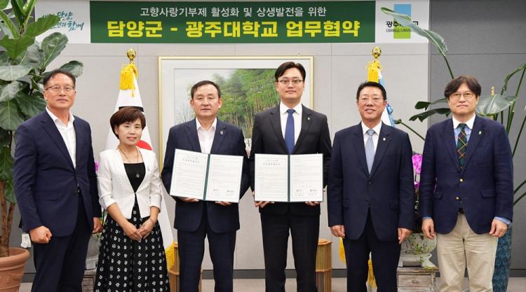 ¾ç ±â°üÀº À̳¯ Çù¾àÀ» °è±â·Î ±¤ÁÖ´ë ±³Á÷¿øÀ» ´ë»óÀ¸·Î ÇÑ °íÇâ»ç¶û±âºÎÁ¦ È«º¸ ¹× ¾È³», ±âºÎ Âü¿©ÀÚ¿¡ ´ëÇÑ ´ã¾ç±º °ø¿µ°ü±¤Áö ÀÔÀå·á ÇÒÀÎ µî °íÇâ»ç¶û±âºÎÁ¦ÀÇ ¼º°øÀûÀÎ Á¤ÂøÀ» À§ÇØ ±ä¹ÐÈ÷ Çù·ÂÇϱâ·Î Çß´Ù.