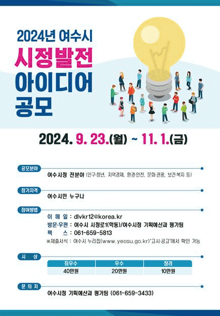 °ø¸ð ÁÖÁ¦´Â ¡®½Ã¹ÎÀÌ ÇູÇÑ »ì±â ÁÁÀº ¿©¼ö ¸¸µé±â¡¯·Î ¡ãÀα¸¡¤Ã»³â ¡ãÁö¿ª°æÁ¦ ¡ãȯ°æ¡¤¾ÈÀü ¡ã¹®È¡¤°ü±¤ ¡ãº¸°Ç¡¤º¹Áö µî Àü ºÐ¾ß¿¡ ´ëÇÑ Âü½ÅÇÑ Á¦¾ÈÀ» Á¢¼öÇÑ´Ù.