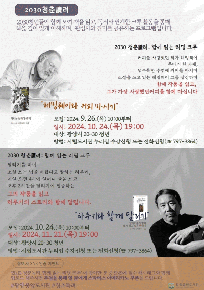 ¡®2030ûÃáÔÁ·Á: ÇÔ²² Àд ¸®µùÅ©·ç¡¯´Â Ã¥, Ä¿ÇÇ, ·¯´×¿¡ °ü½ÉÀÌ ÀÖÁö¸¸, ³·¿¡ µµ¼°ü ÀÌ¿ëÀÌ ¾î·Á¿î û³âÃþÀ» °í·ÁÇØ Àú³á 7½Ã¿¡ ¿î¿µÇÑ´Ù.
