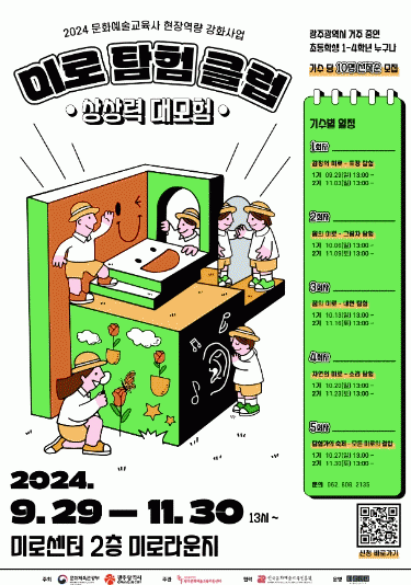 ¡®2024 ¹®È¿¹¼ú±³À°»ç ÇöÀå ¿ª·®°È »ç¾÷¡¯ ÀÏȯÀ¸·Î ÃßÁøÇÏ´Â À̹ø ÇÁ·Î±×·¥Àº ±¤ÁÖ±¤¿ª½Ã¿Í ¹®ÈüÀ°°ü±¤ºÎ°¡ ÁÖÃÖÇÏ°í ±¤ÁÖ¹®È¿¹¼ú±³À°Áö¿ø¼¾ÅͰ¡ ÁÖ°üÇϸç, Çѱ¹¹®È¿¹¼ú±³À°ÁøÈï¿ø°ú Çù·ÂÇØ ¹Ì·Î¼¾ÅÍ¿¡¼ ¿î¿µµÈ´Ù.