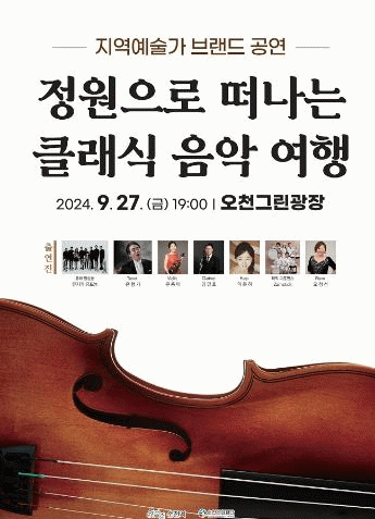 'Á¤¿øÀ¸·Î ¶°³ª´Â Ŭ·¡½Ä À½¾Ç ¿©Çà'À» ÁÖÁ¦·Î ÁøÇàµÇ´Â À̹ø ±âȹ°ø¿¬Àº Áö¿ª¿¹¼ú°¡ÀÇ ¿¹¼úÀû ¼ºÀå°ú °ø¿¬ ÄÜÅÙÃ÷ÀÇ ´Ù¾ç¼ºÀ» Ãß±¸ÇϰíÀÚ ±âȹµÈ Ŭ·¡½Ä ¾ß¿Ü À½¾ÇȸÀÌ´Ù.