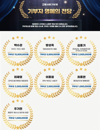 ¾Õ¼ °í¾× ±âºÎ·Î ¿©¼ö½Ã ¸í¿¹ÀÇ Àü´ç¿¡ ¿À¸¥ ±âºÎÀÚ´Â ¹æ¼º¿Á ´ëÇ¥¸¦ ºñ·ÔÇØ ±èÁ¾±â Àü¶ó³²µµ ÀÚÄ¡ÇàÁ¤±¹Àå, ÀÌÁ¾¿ø ºÎ¾È±º »ç¾÷°¡, ÁÖ±â¸é À籤ÁÖ¿©¼ö½ÃÇâ¿ìȸÀå µîÀÌ ÀÖ´Ù.