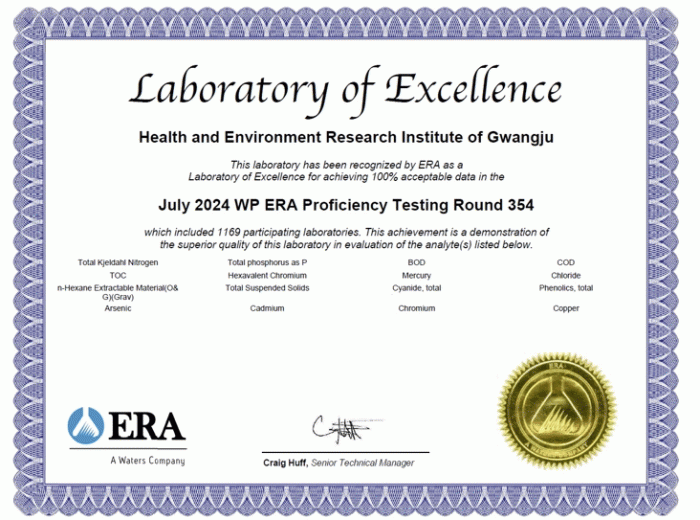 ±¤ÁÖº¸°Çȯ°æ¿¬±¸¿øÀº Áö³ 2015³âºÎÅÍ ÇØ¸¶´Ù ÀÌ Æò°¡¿¡ Âü¿©, 9³â ¿¬¼Ó ¡®ÃÖ¿ì¼ö ºÐ¼®±â°ü¡¯ ÀÎÁõÀ» ȹµæÇß´Ù. ÀÌ´Â ±¤ÁÖº¸°Çȯ°æ¿¬±¸¿øÀÇ ºÐ¼® ´É·ÂÀÌ ±¹Á¦ ±âÁØ¿¡ ºÎÇÕÇϸç, ½Å·Ú¼º ÀÖ´Â ºÐ¼® °á°ú¸¦ Áö¼ÓÀûÀ¸·Î Á¦°øÇϰí ÀÖÀ½À» º¸¿©ÁÖ´Â ¼º°úÀÌ´Ù.