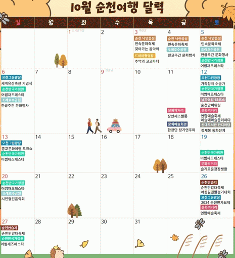 10¿ù ¼øÃµÀÇ ÁÖ¸»Àº ¹ß±æ ´ê´Â °÷°÷ÀÌ ´Ù¾çÇÑ ¹®ÈÄÜÅÙÃ÷·Î °¡µæ ä¿öÁø´Ù.