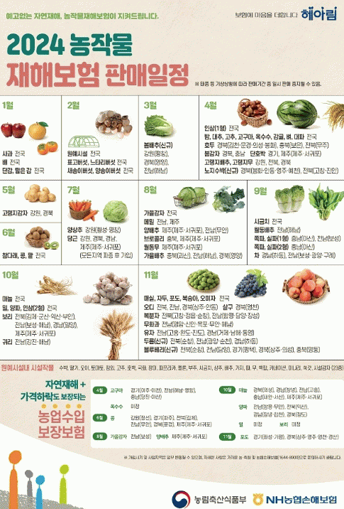 9 ºÎÅÍ 10¿ù ÁÖ¿ä ³óÀÛ¹° ÀçÇØº¸Çè °¡ÀÔ Ç°¸ñÀº ³ìÂ÷, ½Ã±ÝÄ¡, ¸¶´Ã, ¹Ð, º¸¸®, ¾çÆÄ, ÀÎ»ï µî 7°¡ÁöÀÌ´Ù.