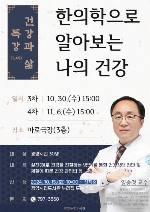 ¡®ÇÑÀÇÇÐÀ¸·Î ¾Ë¾Æº¸´Â ³ªÀÇ °Ç°¡¯À» ÁÖÁ¦·Î ÁøÇàÇÏ´Â ¡¸°Ç°°ú »î¡¹¿¡ ´ëÇÑ Æ¯° 3, 4Â÷¿¡¼´Â ¼³Áø(Çô·Î °Ç°À» ÁøÂûÇÏ´Â ¹æ¹ý)À» ÅëÇØ¼ °Ç° »óÅ ȮÀÎ ¹× »ç»óüÁú°ú 8üÁú¿¡ ´ëÇØ ¾Ë¾Æº» ÈÄ Á÷Á¢ Áø´ÜÇÔÀ¸·Î½á °ü·Ã °Ç° °ü¸®¹ýÀ» Àü´ÞÇÒ »Ó¸¸ ¾Æ´Ï¶ó ÁúÀÇÀÀ´äÀ» ÅëÇØ ±Ã±ÝÁõµµ ÇØ¼ÒÇÒ ¿¹Á¤ÀÌ´Ù.