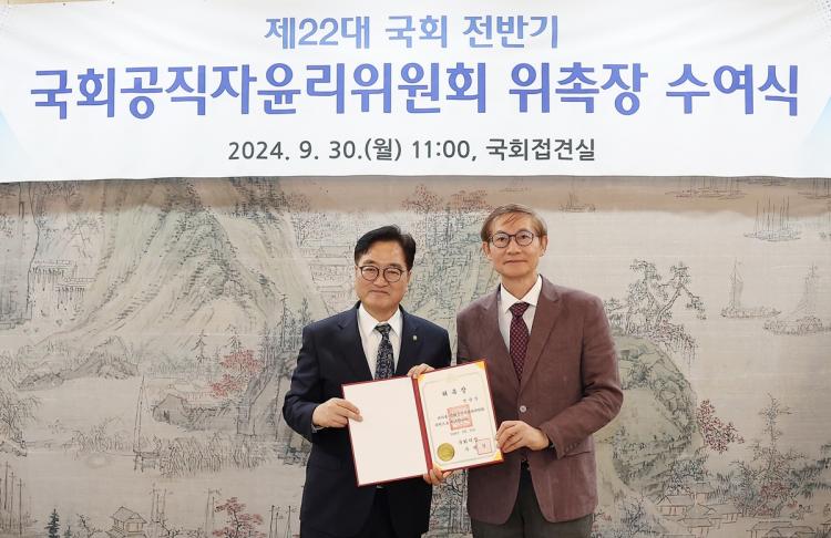 [ÅåÅå´º½º]È£³²´ëÇб³ ÇàÁ¤Çаú Àü±¤¼· ±³¼ö°¡ 22´ë ±¹È¸ Àü¹Ý±â ±¹È¸°øÁ÷ÀÚÀ±¸®À§¿øÈ¸ À§¿øÀ¸·Î À§Ã˵Š9¿ù 30ÀÏ ¿ÀÀü ¼¿ï ¿©Àǵµ ±¹È¸ º»°ü Á¢°ß½Ç¿¡¼ ¿ì¿ø½Ä ±¹È¸ÀÇÀåÀ¸·ÎºÎÅÍ À§ÃËÀåÀ» ¹Þ¾Ò´Ù.