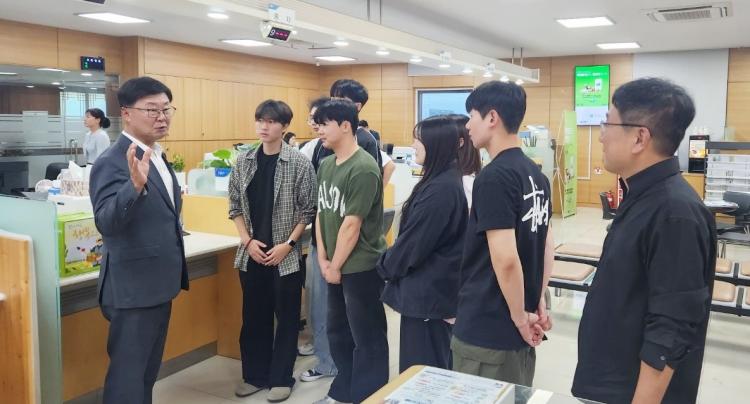 ÇлýµéÀº ¿Ïµµ³óÇù º»Á¡¿¡¼ ±ÝÀ¶¼ºñ½º Á¦°øÀ» À§ÇÑ ´Ù¾çÇÑ °úÁ¤À» Á÷Á¢ °æÇèÇØº¸´Â ±âȸ¸¦ °¡Á³°í, ³óƯ»ê¹°º¹ÇÕÀ¯Åë¼¾ÅÍ¿¡¼´Â ÇöÁöÀÇ ³óƯ»ê¹°ÀÌ À¯Å롤°¡°øµÇ´Â °úÁ¤À» °ßÇÐÇϰí üÇèÇß´Ù.
