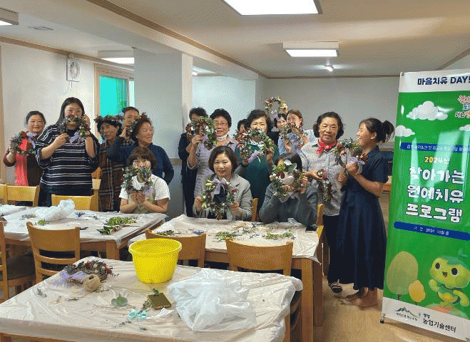 ÀÌÁ¤ ³ó¾÷±â¼ú¼¾ÅÍ ¼ÒÀåÀº ¡°¾î¸£½ÅµéÀÌ ¼ÕÀ¸·Î ¸¸µå´Â Áñ°Å¿òÀ» ´À³¢¸ç Á¤¼Àû ¾ÈÁ¤°¨À» ã´Â Ä¡À¯¿Í Èú¸µÀ» °æÇèÇÏ½Ã±æ ¹Ù¶õ´Ù¡±¶ó°í ÀüÇß´Ù.