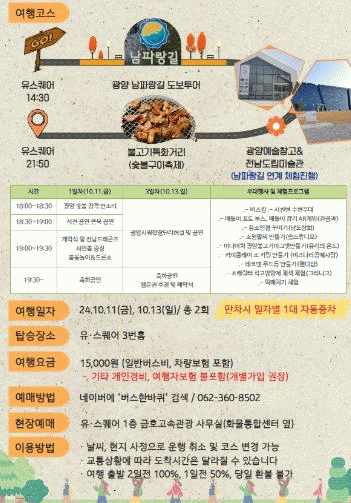 Âü¿©¸¦ ¿øÇÏ´Â »ç¶÷Àº ³²µµÇѹÙÄû ȨÆäÀÌÁö(´©¸®Áý) ½ÃƼÅõ¾î ÄÚ³Ê ¡®±¤¾ç¿©Çà °¡´Â ³¯¡¯¿¡¼ ½ÅûÇÒ ¼ö ÀÖÀ¸¸ç À¯¼± Àüȷεµ »çÀü ¿¹¾àÀÌ °¡´ÉÇÏ´Ù.