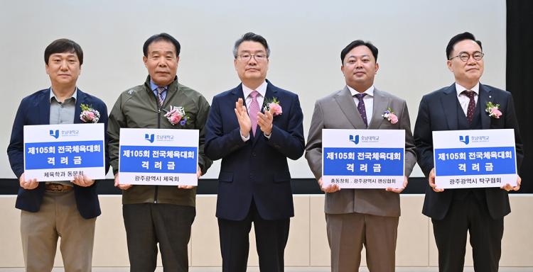 À̳¯ °á´Ü½Ä¿¡¼´Â ±¤ÁÖ±¤¿ª½ÃüÀ°È¸, È£³²´ëÇб³Ãѵ¿¹®È¸, ±¤ÁÖ±¤¿ª½Ãʱ¸Çùȸ, üÀ°Çаú µ¿¹®È¸ µî¿¡¼ È£³²´ë ¼±¼ö´ÜÀÇ ¼±ÀüÀ» ±â¿øÇÏ¸ç °Ý·Á±ÝÀ» Àü´ÞÇß´Ù.