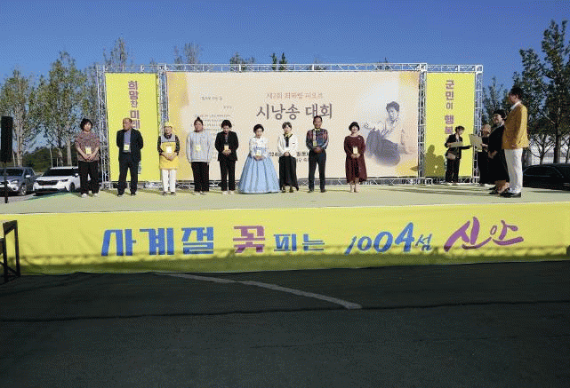 Á¦2ȸ ÃÖÇϸ² ÇÇ¿À¸£ ¹®ÇÐÁ¦´Â ÃÖÇϸ² ½ÃÀÎÀÇ Á׸¶°í¿ìÀÎ ±èÀçÈñ Àü ½Å¾È±ºÀÇȸ ÀÇÀåÀÌ ÃÖÇϸ² ½ÃÀÎÀ» ȸ»óÇÏ¸ç ¹®À» ¿¾ú´Ù. À̾îÁø ½Ã³¶¼Û´ëȸ´Â 8ÁÖ°£ µ¿¾È ½Ã³¶¼Û °Á¿¡ Âü¿©ÇÑ ÆÈ±Ý¸é ÁֹΠÁß, ÃÖÁ¾ °á¼±À» Åë°úÇÑ 11¸íÀÇ ÁÖ¹ÎÀÌ ´ëȸ Âü°¡ ÀÚ°ÝÀ» ¾ò¾î ¹«´ë À§¿¡ ¼¹´Ù.