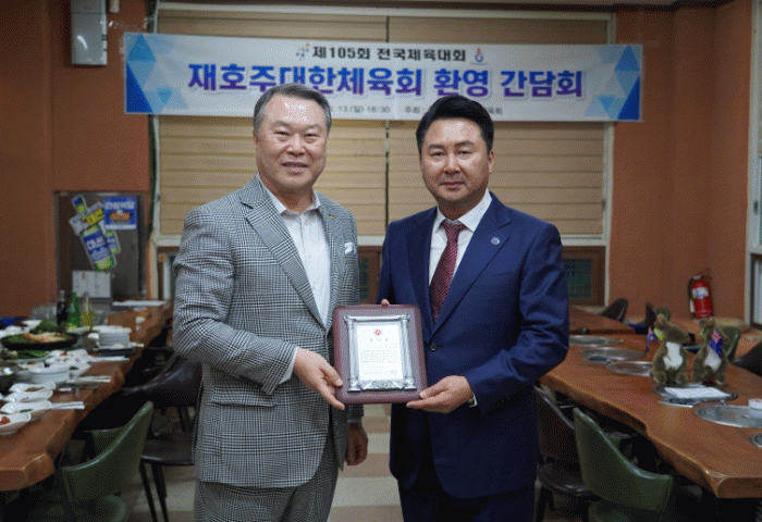 Áö³ 13ÀÏ °æ³² ±èÇØÀÇ ÇÑ ½Ä´ç¿¡¼ ¿¸° ÀçÈ£ÁÖ ´ëÇÑüÀ°È¸ ¼±¼ö´Ü ȯ¿µ °£´ãȸ¿¡´Â Àü°©¼ö üÀ°È¸Àå, ÃÖ¼ºÈ¯ ÀçÈ£ÁÖ ´ëÇÑüÀ°È¸Àå µî ¾ç ±â°ü ÀÓÁ÷¿ø 30¿©¸íÀÌ »óÈ£ ±â³äǰÀ» ±³È¯ÇÏ¸ç ¿ìÀǸ¦ ´ÙÁ³´Ù.