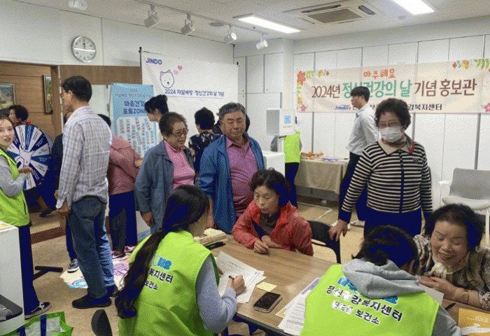 Áøµµ±º º¸°Ç¼Ò´Â ¿ÀÀü 10½ÃºÎÅÍ ¿ÀÈÄ 3½Ã±îÁö ¡®Á¤½Å°Ç°ÀÇ ³¯ ±â³ä È«º¸°ü¡¯À» ¿î¿µÇϸé¼, ¡®¸¶ÁÖÇØ¿ä - Á¤½Å°Ç°Àº ¸¶ÁÖÇÏ¸é¼ ½ÃÀÛÇÕ´Ï´Ù¡¯¶ó´Â ÁÖÁ¦·Î ¸¶À½°Ç° Æ÷ÅäÁ¸À» ¼³Ä¡Çߴµ¥, Á¤½Å°Ç°º¹Áö¼¾ÅÍ¿¡¼ Á÷Á¢ Á¦ÀÛÇÑ ¹®±¸¿Í ÇÇÄÏÀ» Ȱ¿ëÇØ »çÁøÀ» Âï°í ¹Ù·Î ÀÎÈÇØ °¡Á®°¥ ¼ö ÀÖ¾ú´Ù.