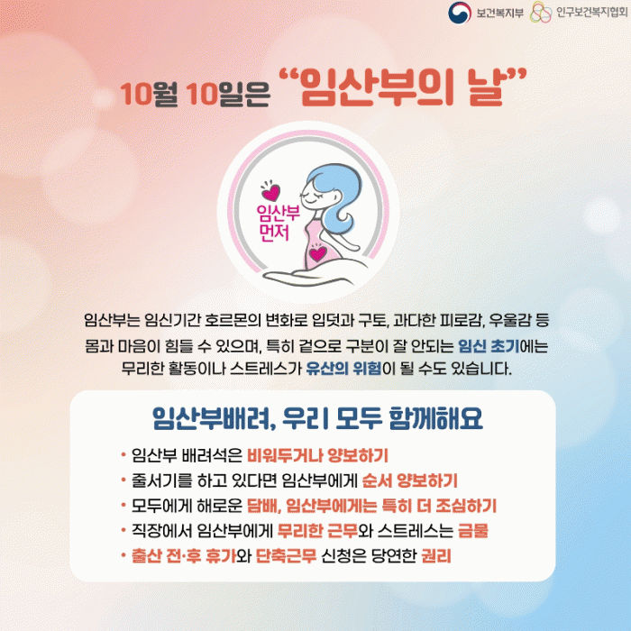 °µ¿·Ä º¸°Ç¼ÒÀåÀº ¡°ÀÓ»êºÎ°¡ °Ç°Çϰí ÇູÇÑ ÀӽŰú Ãâ»êÀ» ÇÒ ¼ö ÀÖµµ·Ï »çȸÀû ¹è·Á ºÐÀ§±â¸¦ Á¶¼ºÇÏ´Â °ÍÀÌ ¹«¾ùº¸´Ù Áß¿äÇÏ´Ù¡±¸ç ¡°¾ÕÀ¸·Îµµ ÀÓ»êºÎ Áö¿ø Á¤Ã¥»Ó¸¸ ¾Æ´Ï¶ó ÀӽŰú Ãâ»ê¿¡ ´ëÇÑ ±àÁ¤Àû ÀνÄÀÌ È®»êµÉ ¼ö ÀÖµµ·Ï Àû±Ø ¾ÕÀå¼°Ú´Ù¡±°í ÀüÇß´Ù.