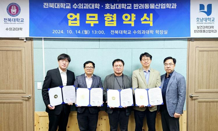 ÀüºÏ´ëÇб³ ¼öÀǰú´ëÇп¡¼ ¿¸° À̹ø Çù¾à½Ä¿¡´Â ÀüºÏ´ëÇб³ ¼öÀǰú´ëÇÐ ¹Ú»ó¿ ÇÐÀå°ú ±è¹ü¼® ºÎÇÐÀå, ÀüºÏµ¿¹°ÀÇ·á¼¾ÅÍÀÇ ½Å±â¿í ¼¾ÅÍÀå, ±×¸®°í È£³²´ëÇб³ ¹Ý·Áµ¿¹°»ê¾÷Çаú À̹®¿µ ÇаúÀå µî ÁÖ¿ä °ü°èÀÚµéÀÌ Âü¼®ÇØ ¾ç ±â°üÀÇ Çù·ÂÀ» ´ÙÁüÇß´Ù.