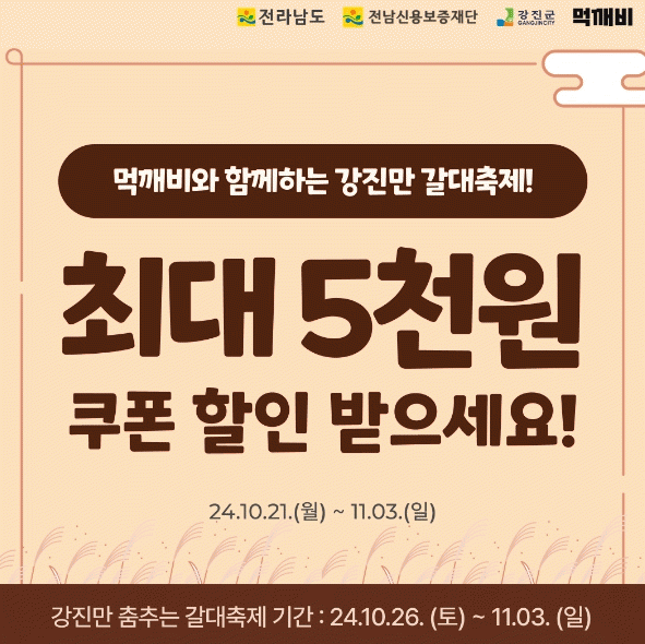 À̺¥Æ® ±â°£ Áß ¸Ô±úºñ ¾ÛÀ» ÅëÇØ 1¸¸ 5õ ¿ø ÀÌ»ó °áÁ¦ ½Ã, Áï½Ã Àû¿ëµÇ´Â ÇÒÀÎ ÄíÆùÀÌ Á¦°øµÈ´Ù.