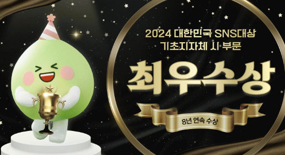 À¯Æ©ºê, ºí·Î±×, ÆäÀ̽ººÏ µî ¿ÃÇØ SNS Ȱ¿ëÁö¼ö¿¡ ´ëÇÑ Á¾ÇÕÆò°¡, Á¤·®Æò°¡(1Â÷), Àü¹®°¡ Æò°¡ ¹× »ç¿ëÀÚ ÅõÇ¥(2Â÷)¸¦ ÅëÇØ ¼ö»óÀÚ¸¦ ¼±Á¤ÇÏ¸ç ±¤¾ç½Ã´Â °¢ ºÎ¹®¿¡¼ ³ôÀº Á¡¼ö¸¦ ¹Þ¾Æ ¼ö»óÀÇ ¿µ¿¹¸¦ ¾È¾Ò´Ù.
